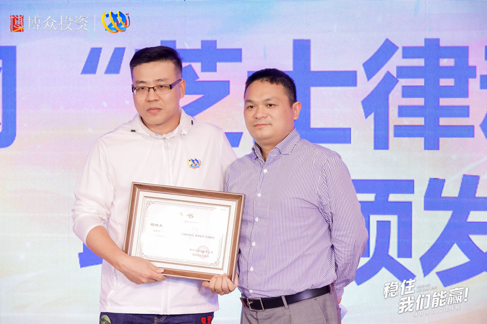 下一項(xiàng)慶典議程是博眾文化頒獎儀式,首先頒發(fā)的是“以奮斗者為本”獎。榮獲此項(xiàng)榮譽(yù)的團(tuán)隊(duì),是由朱艷湘率領(lǐng)的行政部。緊接著,頒發(fā)的是“本分”獎,榮獲此項(xiàng)殊榮的團(tuán)隊(duì)是柯炎敏率領(lǐng)的合規(guī)部。均由鄒總為獲獎團(tuán)隊(duì)頒發(fā)榮譽(yù)并進(jìn)行合影留念。